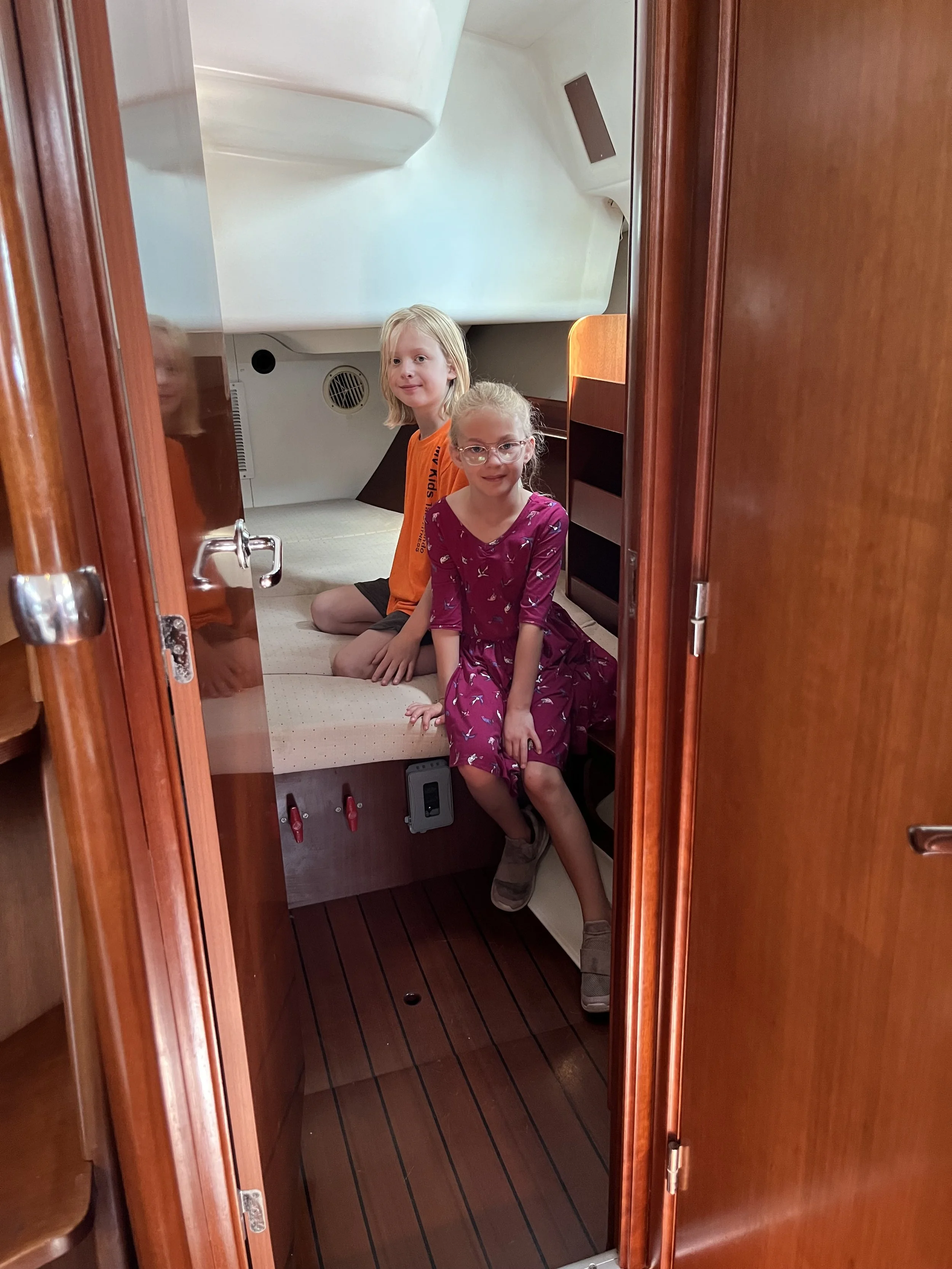 Ewan and Gwyneth are checking out one of the aft cabins. It didn’t take long for them to claim rooms and declare that the boat was worth considering for purchase! 😆
